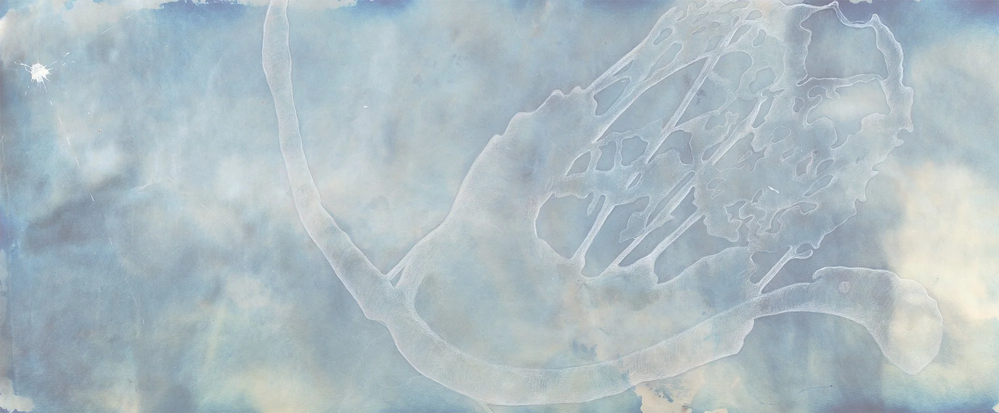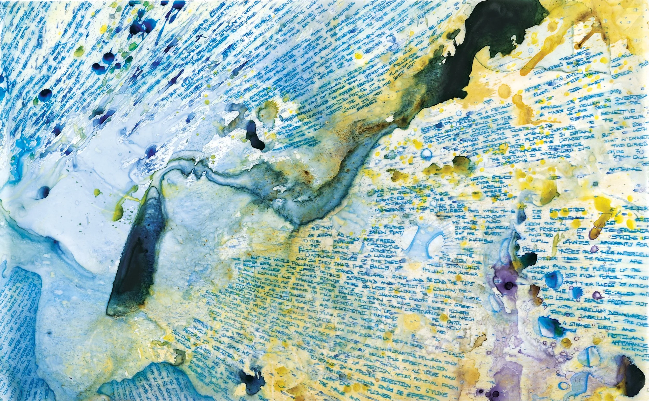 Mixed media paintings, works on paper and sculpture evoking flux and transformation, dislocation and memory.