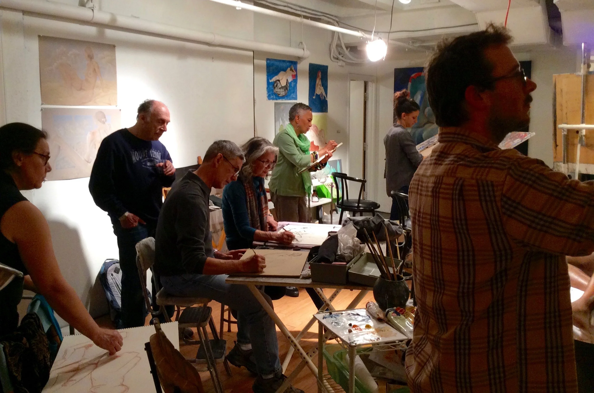 This is a group of people from all walks of life who gather every week to draw and paint the human figure. The group has met every Tuesday night for 41 years.